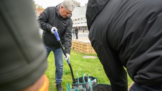 Александр Гусев вместе с мэром Воронежа Сергеем Петриным посадил деревья возле городского дворца культуры 19 октября в рамках акции по уборке территории, которая охватила весь регион.