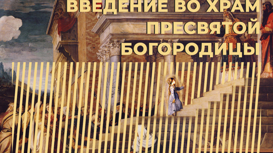 Введение во храм Пресвятой Богородицы отсылает к событию из детства Девы Марии. Когда девочке исполнилось три года, её родители Иоаким и Анна решили исполнить данный Богу обет и посвятить жизнь дочери служению Богу.