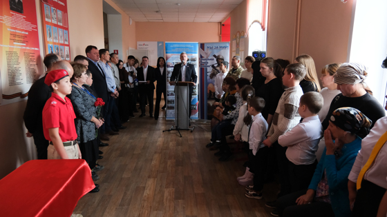 По поручению председателя Думы Астраханской области Игоря Мартынова в памятной церемонии участвовал вице-спикер регионального парламента Олег Петелин. Сам Игорь Александрович принимал сегодня участие в открытии Парты Героя в Каралатской школе.