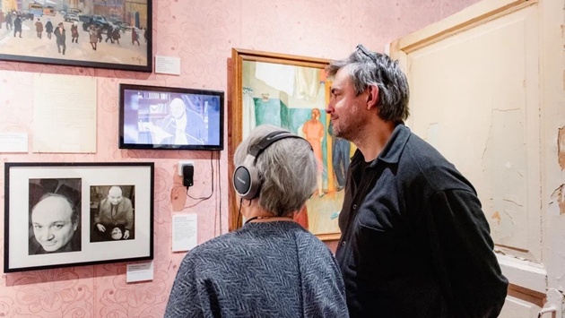 Во втором зале - коммуналка. Слышатся чьи-то голоса, кругом распахнутые двери. "Сердце" этого пространства - сцена с микрофоном и надписью: "Эстрада - это одинокий человек, стоящий перед людьми. И кто бы что ему ни говорил, он одинок". Тут - территория Жванецкого.