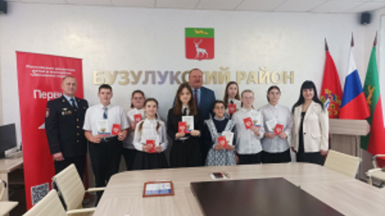В торжественной обстановке в администрации Бузулукского района воснмь юных жителей Бузулукского района получили свой главный документ – паспорт гражданина РФ из рук первого заместителя главы администрации Бузулукского района Андрея Евсюкова. Столь знаменательное событие в этот же день проходило в Бузулукском краеведческим музее, где 34 школьникам первый паспорт гражданина РФ вручили глава города Бузулука Владимир Песков, председатель горсовета Александр Шубин и начальника отдела по вопросам миграции МО МВД России «Бузулукский» майор полиции Александр Ворожцов. Дети хором произнесли торжественное обещание гражданина Российской Федерации. Юноши и девушки пообещали верно и преданно служить Отечеству, защищать его интересы, безопасность и независимость и сделать все для процветания России и ее лучшего будущего. После завершения торжественного мероприятия для гостей провели экскурсию по музею и рассказали о главных экспонатах.