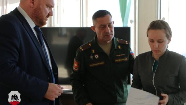 Глава города Артём Воробьёв и военный комиссар Сергей Воропанов вручили ордена Мужества и соответствующие удостоверения родным погибших героев.