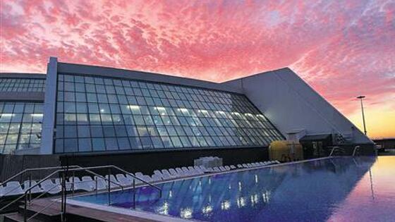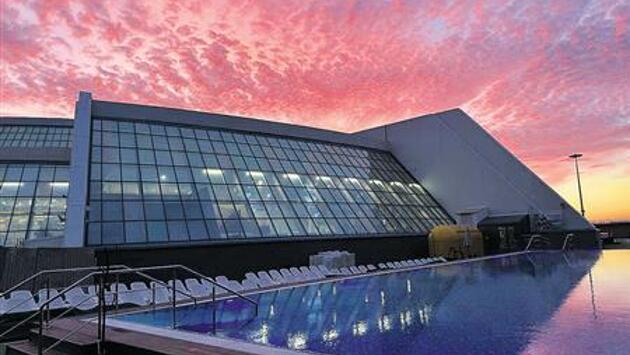 Освежиться посетители комплекса могут в бассейнах. Есть термальный с температурой 32-34 градуса, горячий (40-42 градуса), холодный (17-19 градусов) и детский (34-36 градусов). Очищение воды происходит с помощью ультрафиолета и хлора. Вода циркулирует постоянно, ее качество и безопасность контролируется новейшим современным оборудованием. Кроме того, в термальном бассейне и джакузи работает система гидромассажа. Включить ее можно с помощью кнопки, установленной на бортике.
