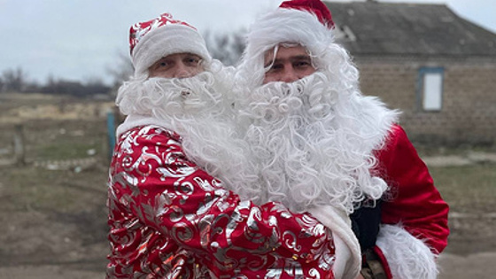 Исполняли роли Дедов Морозов два водителя волонтерского каравана. И вызывали у бойцов детский восторг. "Один парень так радовался, говорил: даже в детстве Дед Мороз к нему не приходил, а тут — такое чудо! И многие просили записать видео, чтобы, когда появится связь, отослать своим детям. И вот вокруг воронки, танки сгоревшие, разрушенная деревня, а он, Дед Мороз, стоит и машет в камеру: "С Новым годом, Саша! Я тебе от папы письмо пришлю!", — вспоминает волонтер.
