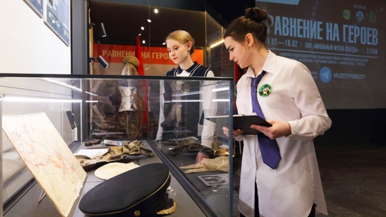 В Музей на Поклонной горе прибыли предметы из коллекций трех школ - участников программы "Школьный музей Победы". Московская школа № 2006, Бунинская школа Орловской области и гимназия г. Светлогорска Гомельской области выставили собранные и хранимые ими раритеты - предметы обмундирования, фронтовые письма участников Великой Отечественной войны. На выставке можно увидеть фуражку, подшлемник, боевую схему моряка Днепровской военной флотилии, участника освобождения Светлогорского района Беларуси Сергея Петровича Хватова, личные вещи командира отряда разведки сержанта Ивана Ананьевича Амелина, летчика 171-го истребительского авиаполка Николая Яковлевича Столярова. Экспозицию дополняют реликвии с мест сражений, найденные школьниками в поисковых экспедициях вместе с военно-патриотическим клубом "Ратник".