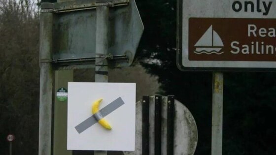 Художник решил спародировать работу "Комедиант", которую в ноябре 2024 года продали на аукционе в Нью-Йорке за 6,2 миллиона долларов, рассказал он. Инсталляция представляет собой банан, приклеенный к стене скотчем.
