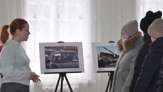 "Особенно меня поразила фотография разрушенного драматического театра. И вот эта надпись "Дети" на тротуаре рядом с руинами. Что ощущали дети, которые находились в подвалах театра? Да и вообще все дети, прятавшиеся в подвалах на Донбассе, когда их просто расстреливали. И другая надпись "Дети" - на изрешеченном пулями лобовом стекле автомобиля. Две эпохи, две войны, но враг один", - рассуждает Татьяна Кобзева.