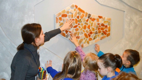Обычно маленьким экскурсантам предлагают рассказать, с чем ассоциируются у них разноцветные камешки селенита. Фантазия у детворы богатая: одни видят сыр с плесенью, другие кусочки ветчины, а кто-то и вареную сгущенку.