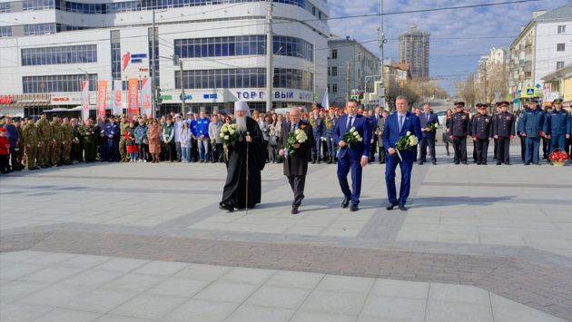 В церемонии возложения цветов также принял участие губернатор Александр Соколов, митрополит Вятский и Слободской Марк, сотрудники правоохранительных органов и юнармейцы.