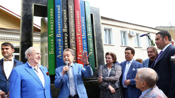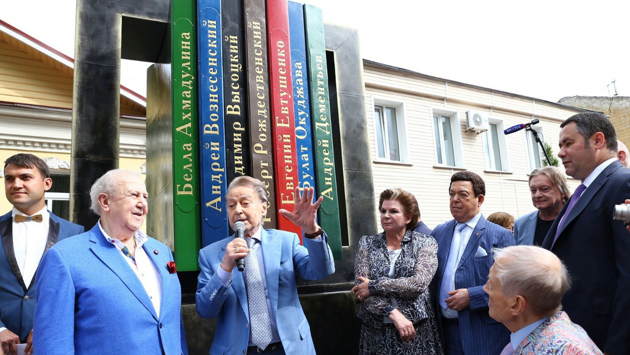 На первом снимке — открытие памятника поэтам-шестидесятникам, который стал подарком Тверскому Дому поэзии от Церетели. 2016 год. Еще жив Евгений Евтушенко, он сидит в первом ряду в «фирменном» цветном пиджаке. Церетели. Дементьев, Кобзон — в синих костюмах похожего оттенка. Сегодня у памятника в Твери, по словам Анны Давыдовны, поставили вазы с подсолнухами, которые так любил Зураб Константинович.