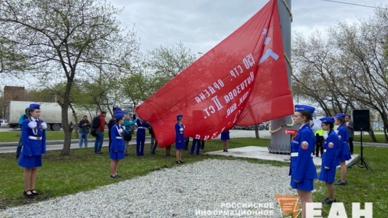 «Свердловск внес огромный вклад в дело общей победы. Именно в наш город были эвакуированы заводы, которые в кратчайшие сроки начали выпуск так необходимой фронту продукции. Большинство этих предприятий располагалось именно на территории Орджоникидзевского района», – заявил Орлов. Знамя площадью 40 кв. метров подняли на самый высокий в городе 30-метровый флагшток. В прошлом году там поднимали флаг России. «У нашей страны есть много других символов, и один из них – Знамя Победы, которое реяло над Рейхстагом и ознаменовало победу советского народа в Великой Отечественной войне», – пояснил логику замены Алексей Орлов. Вместе с Орловым в сквер приехали депутат Госдумы Сергей Чепиков, вице-спикер заксобрания Свердловской области Михаил Клименко, депутаты думы Екатеринбурга Игорь Володин и Сергей Козлов, а также ветеран Великой Отечественной войны, почетный гражданин города Михаил Миронов, пишет ЕАН. «ФедералПресс» ранее подробно рассказывал о том, как Михаил Миронов и еще 36 ветеранов Великой Отечественной войны получили звания почетных граждан Екатеринбурга. Фото: ЕАН / Мария Трускова