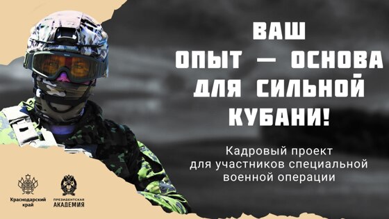 Проект «Герои Кубани» — это признание заслуг тех военнослужащих и ветеранов, кто проявил себя в сложнейших условиях, и решил продолжить служение Родине — в мирное время, в гражданской жизни. Об этом говорится в сообщении в Telegram-канале проекта. Отмечается, что государственная служба – это не только стабильность, но и участие в решении задач, которые касаются каждого. Это возможность служить людям, использовать свои знания и силу характера на благо общества, подчёркивают на официальной странице проекта. «Государственная служба сегодня – это стремление и мотивация служить во благо своей родины, это возможность помогать людям, быть вовлечённым и заинтересованным в решении проблем каждого человека, который обращается за помощью и защитой в государственный орган», – говорит начальник управления кадровой политики администрации Краснодарского края Екатерина Михайлова. По мнению организаторов проекта, важно, чтобы в управлении были те, кто умеет принимать решения, знает, что такое дисциплина, стратегическое мышление и ответственность за других. «Участники СВО обладают этими качествами, а проект даёт возможность превратить уникальный опыт в карьерную траекторию», – отмечается в сообщении.