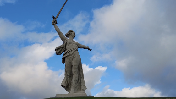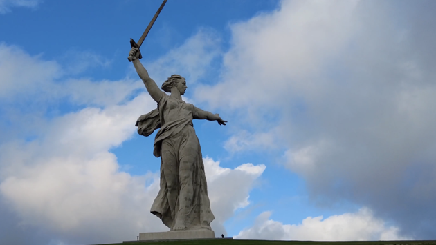 Оригинальная «Родина-мать» находится на Мамаевом кургане в Волгограде. Это 85-метровая скульптура женщины, шагнувшей вперёд с поднятым мечом. Кстати, одна из самых высоких в мире.