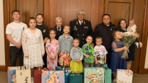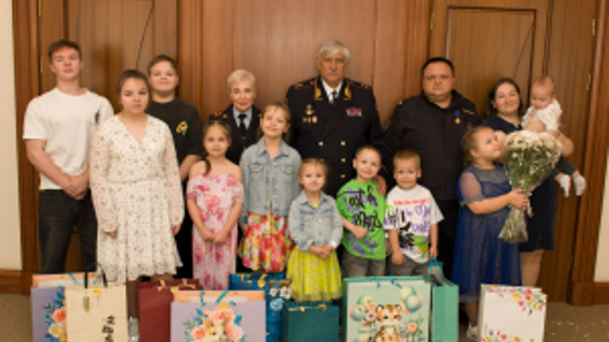 В преддверии празднования Международного дня защиты детей в ГУ МВД России по Московской области состоялась встреча начальника подмосковного Главка МВД России генерал-лейтенанта полиции Виктора Паукова с семьей сотрудника полиции Олега Загребина. Олег Загребин служит в должности полицейского-водителя 1 мобильного взвода отдельного батальона патрульно-постовой службы полиции МУ МВД России «Щёлковское» в звании старшего сержанта полиции. Вместе с супругой Марией он воспитывает десятерых детей в возрасте от года до шестнадцати лет. Старший сын в настоящее время учится в колледже по специальности «юриспруденция» и после выпуска планирует пойти по родительским стопам и продолжить профессиональную деятельность в органах внутренних дел. Руководитель главка отметил, что воспитание детей, особенно в многодетных семьях, - огромный ежедневный труд и большая ответственность. Когда дети воспитываются в атмосфере дружбы, взаимопонимания и взаимоуважения, из них получаются достойные граждане великой страны. Виктор Пауков пожелал семье благополучия, тепла, счастья и вручил памятные подарки.
