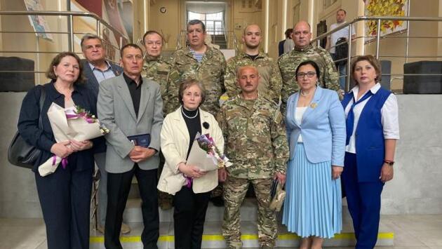 В Курске медаль «Отец солдата» вручили отцам погибших и действующих участников СВО В музее "Юные защитники Родины" вице-спикер Госдумы РФ Анна Кузнецова и Александр Хинштейн вручили курянам медали «Отец солдата». Это общественная награда вручается мужчинам-отцам за мужество, отвагу, самоотверженность и преданность Отечеству их сыновей. Награды получили отцы Героев СВО Виктор Гончаров и Александр Тутов и добровольцы бригады «БАРС-Курск» Анатолий Малышев и Эрик Михеев, которые являются отцами военнослужащих, принимающих участие в СВО, сообщили в филиале фонда "Защитники Отечества".