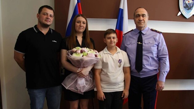 Ростовская область, 5 июня 2025. DON24.RU. Руководитель СУ СК России по Ростовской области Аслан Хуаде вручил ведомственную медаль «За высокую гражданственность» 10-летнему жителю Волгодонска Дмитрию Русакову. 10 мая 2025 года 10-летний житель Волгодонска Дмитрий Русаков стал очевидцем нападения мужчины на девушку вблизи многоэтажного дома в Волгодонске. Дмитрий бросился на помощь. Он схватил злоумышленника за руку и тем самым помог девушке вырваться из рук правонарушителя. «Дмитрий, ты настоящий герой нашего времени. Твой поступок вызывает огромное уважение. Не каждый взрослый способен проявить такую решимость и мужество в критический момент», – отметил Аслан Гарунович. Также руководитель регионального следственного управления СК России выразил благодарность мальчику за его бесстрашный и смелый поступок, поблагодарил родителей за хорошее воспитание и предложил поступить на обучение в ведомственный кадетский корпус. Юному герою также был вручен памятный подарок – перчатки для рукопашного боя с личной подписью его прославленного тезки, российского боксера Дмитрия Кудряшова. Егор Ткаченко ИА «ДОН 24»