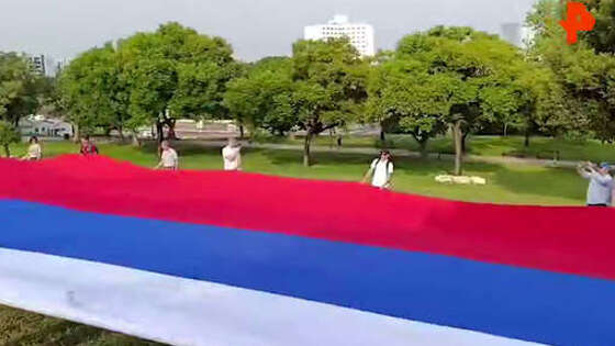 Торжественное мероприятие ко Дню России состоялось в центре Луганска на площади Героев Великой Отечественной войны. В нем приняли участие глава ЛНР Леонид Пасечник, сенатор РФ Ольга Бас, спикер парламента республики Денис Мирошниченко, депутат ГД Виктор Водолацкий, руководители силовых ведомств региона. В ходе мероприятия почетный караул Юнармии водрузил российский флаг на главный флагшток республики, после чего активисты "Молодой гвардии "Единой России" развернули 30-метровый флаг РФ под живое исполнение ансамбля песни и танца МВД по ЛНР "Офицеры".