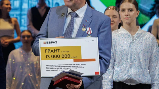 К своему юбилею СибГИУ получил от комбината ЕВРАЗ ЗСМК грант на 13 миллионов рублей. Средства направят на закупку оборудования для Центра цифровой металлургии: тренажеров-имитаторов базовых профессий отрасли – "Агломератчик", "Сталевар" и "Разливщик стали". Кроме того, 3D-сканером, 5D-принтером, современным токарным станком и другими материалами будет обеспечен новый инжиниринговый центр.