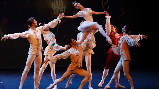 Что играет: "Спящая красавица", "Дон Кихот", "Лебединое озеро", "Блестящий дивертисмент".