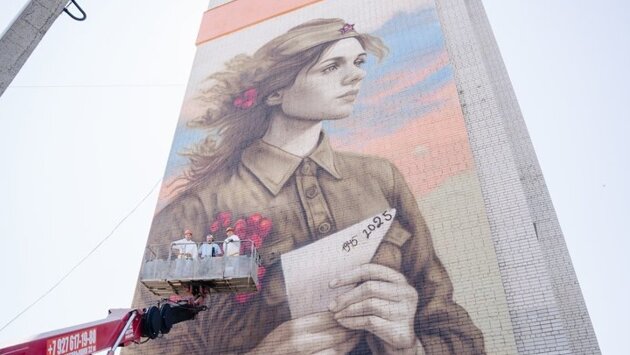 В Зеленодольске появился новый мурал под названием "Ждет", посвященный Победе в Великой Отечественной войне. Об этом сообщила пресс-служба Минмолодежи.