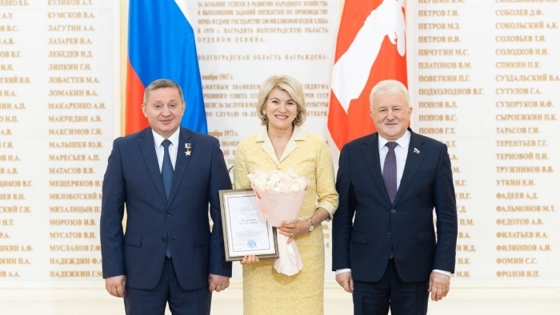 Кроме того, сегодня губернатор Андрей Бочаров вместе с председателем комитета ГД ФС РФ по транспорту и развитию транспортной инфраструктуры Евгением Москвичевым передал волгоградцам заслуженные награды от имени председателя Государственной думы Вячеслава Володина за вклад в организацию и проведение международного форума Союзного государства «Великое наследие – общее будущее». Форум состоялся в Волгограде в апреле этого года.