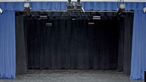 Там появился полный набор звукового и светового оборудования, комплекс тканевых деталей для оформления контуров сценического пространства, антрактно-раздвижной занавес.