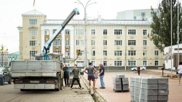 Сквер рядом с Главпочтамтом в Курске начали ремонтировать