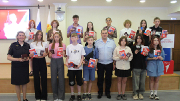 В Кировской областной научной библиотеке имени А.И. Герцена в рамках акции «Мы - граждане России» состоялось торжественное вручение паспортов юным кировчанам. Мероприятие организовано УМВД России по Кировской области, региональным отделением «Движение Первых» при поддержке Общественного совета при Управлении. Ребят поприветствовали начальник областного УМВД генерал-майор полиции Константин Селянин и заместитель председателя Общественного совета при Управлении, Почётный гражданин Кировской области и города Кирова Сергей Смирнов. Они выразили надежду, что четырнадцатилетние кировчане станут достойными гражданами своей страны, проявив себя в учёбе, спорте и творчестве. К поздравлениям присоединился заместитель председателя Совета регионального отделения «Движение Первых» Максим Елькин. Из рук почётных гостей свои первые паспорта получили 35 жителей областного центра. Помимо документов ребятам вручались сувениры от «Движения Первых» и экземпляры Конституции Российской Федерации.