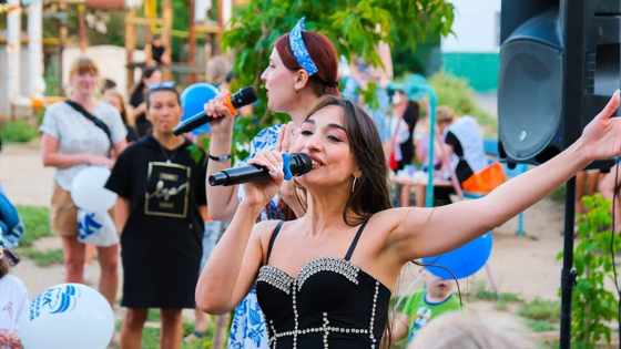 Во дворе дома №44 на улице Дзержинского устроили концерт местных творческих коллективов, которые исполняли всеми любимые песни, а также флешмоб для детей. Юных гостей праздника угощали мороженым.