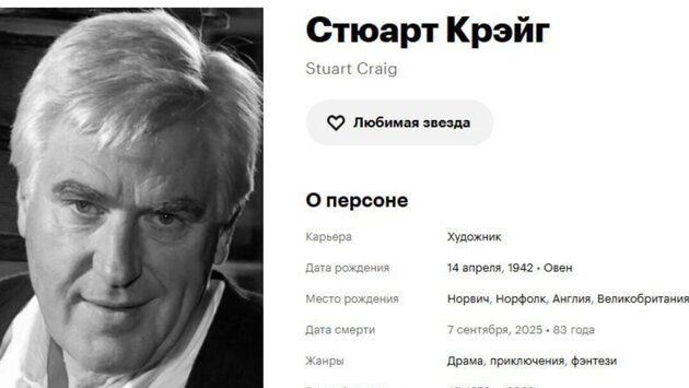 Стюарт Крэйг скончался на 84-м году жизни