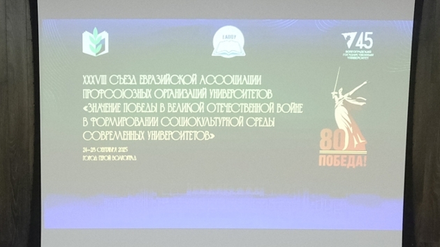 В Волгограде завершил работу XXXVIII съезд Евразийской ассоциации профсоюзных организаций университетов, посвященный 80-летию годовщины Победы в Великой Отечественной войне. Ключевым событием стала торжественная церемония передачи в дар музею-панораме «Сталинградская битва» уникальных книг от вузов стран евразийского пространства.
