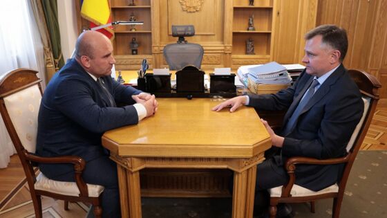 Николай Прутиков рассказал Юрию Слюсарю как прошла его трехмесячная стажировка, во время которой он знакомился с работой органов исполнительной власти региона, местных администраций, предприятий и учреждений.
