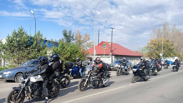 Так, мотоциклисты устроили пробег по улицам поселка, почтив память погибших, а также возложили цветы.