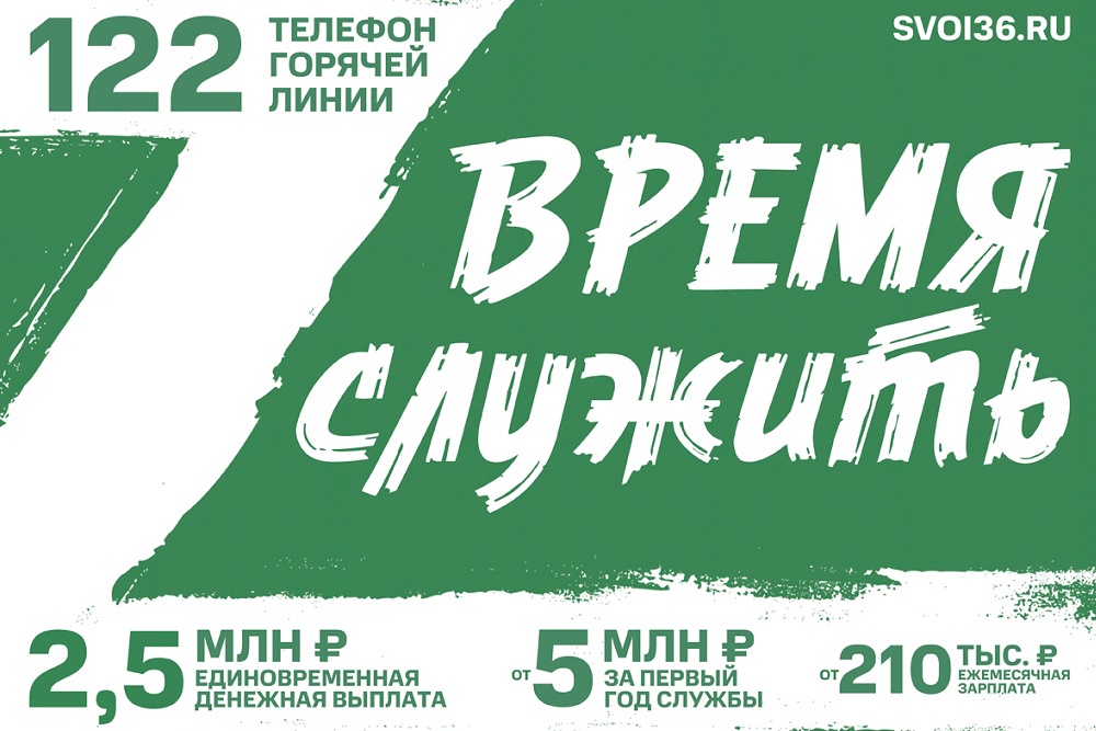 Контракт с Министерством обороны РФ для участия в специальной военной операции заключается на срок от одного года со всеми категориями граждан. Подробности - на сайте svoi36.ru, по телефону 122 или в пункте отбора на контрактную службу по адресу: Воронеж, улица Фридриха Энгельса, 52.