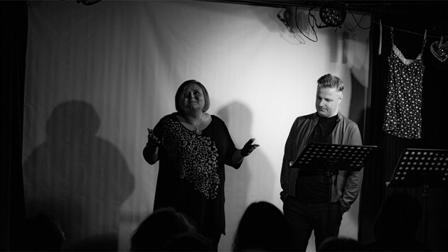 Я смотрела постановку впервые, хотя перед началом слышала в зале разговоры зрителей, свидетельствовавшие о том, что многие ходят на "Номера…" по второму, а то и по третьему разу. Вообще в зале царил полный аншлаг, и, по словам сотрудников "Гипериона", для этого спектакля большое количество зрителей – постоянная история, поэтому "стульев всегда будет мало". В афише было заявлено, что нам предстоит выслушать диалог о любви длиной в два часа. Мужчина и женщина в пространстве чувственности слов постигают друг друга не как физические личности, но как хтонические сущности — то ли до смерти, то ли после смерти, то ли в самом её процессе. Вокруг темно, ветрено и бесприютно. И что могут сказать друг другу в этом посмертии Она и Он?.. И вот в уютном тёмном зале, наполненном предвкушением, начался спектакль. Уже в первые десять минут зрители окунулись в атмосферу нежности и страсти. Это для меня лично стало ярким примером того, как тексты поэта и прозаика могут ожить на сцене – стать живыми в прямом смысле данного эпитета. В центре постановки – идея любви и смерти во всех проявлениях неразрывности Эроса и Танатоса. Спектакль сочетает в себе писательские тексты, музыкальные номера и выразительную сценографию, создавая целостное художественное пространство. Этот уникальный проект объединяет тексты двух очень современных авторов, создавая неповторимую атмосферу загробного мира, эротического покалывания внизу живота и искренних чувств. Важной особенностью спектакля для меня явилось то, что каждый прочитанный текст становился как бы частью живого диалога со зрителем. Авторы – Дана Курская и Евгений Сулес – известны своими живыми эмоциональными текстами, которые затрагивают темы любви, смерти, надежды и внутренней борьбы внутри узнаваемого читателем человека. Но не надо думать, что постановка представляет собой просто чтения текстов. Евгений и Дана и поют, и пьют, и танцуют, и общаются со зрителями, и фильмы показывают, и снова танцуют, и выясняют отношения с незнакомым мужиком, и даже на рояле играют! Спектакль условно разделен на две части – "до" и "после" ошеломляющего танца. "До" – зрители, в основном, смеются. "После" – плачут. Это действительно так: по всему залу были слышны всхлипы, когда Курская читала стихи, посвящённые памяти своих ушедших родителей. Особое внимание уделяется визуальному оформлению – минималистичная декорация в виде бельевой веревки с игривыми женскими кружевами, световые эффекты и видеопроекции помогают чутче и пристальнее погрузиться в мир поэзии и прозы, а мягкое освещение сцены создает интимную атмосферу. Важно заметить, что и Евгений, и Дана – не только мастера слова, но и актёры, поэтому они именно профессионально передают зрителям настроение и смысл каждого текста, делая акцент на его эмоциональной глубине. Музыкальное сопровождение усиливает этот эмоциональный эффект. Анджело Бадаламенти, "Radiohead" и "Агата Кристи" органично подчеркивают звучащие тексты и то, что происходит между чтением. Название спектакля взято из рассказа Сулеса об одиноких вечерах командировочного в отеле чужого города. Но на самом деле, как мне показалось, имеются в виду номера телефонные – те самые, по которым нам будут звонить после смерти, как в финале спектакля. Сулес и Курская очень бережно и тонко чувствуют друг друга. Спектакль яв