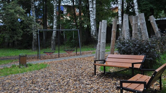 В общественном пространстве подрядчик проложил дорожки, установил качели и уличные тренажёры, обустроил детскую и спортивную площадки, отремонтировал уличную сцену и посадил новые деревья и кустарники. На текущей неделе специалисты завершат работы по подключению видеонаблюдения.