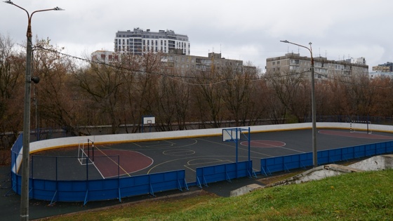 В школе № 154 на улице 40 лет Октября, 2 привели в порядок спортивную площадку: там было демонтировано старое покрытие, рабочие залили бетонное основание, покрыли его полиуретаном и установили новое ограждение.