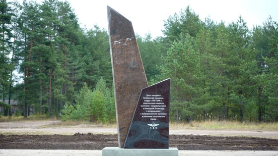 Части мемориала, который представляет собой трехметровую стелу из двух гранитных плит, были изготовлены в Петрозаводске. Сейчас они уже установлены на постоянное место, идет благоустройство территории.