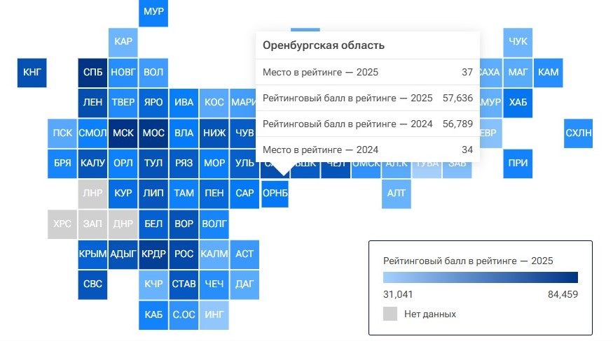 Оренбургская область оказалась в середине рейтинга российских регионов по качеству жизни