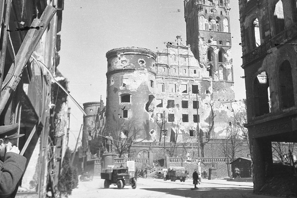 С венценосными особами это место связывают не просто так. По правую руку от Дома Советов когда-то находился Кенигсбергский замок. Он был практически полностью уничтожен авиаударом британцев в 1944 году, а штурм города советскими войсками в 1945-м только усугубил ситуацию. Спасти историческое наследие не удалось, однако территорию возле замка так и продолжили называть "Королевской горой".