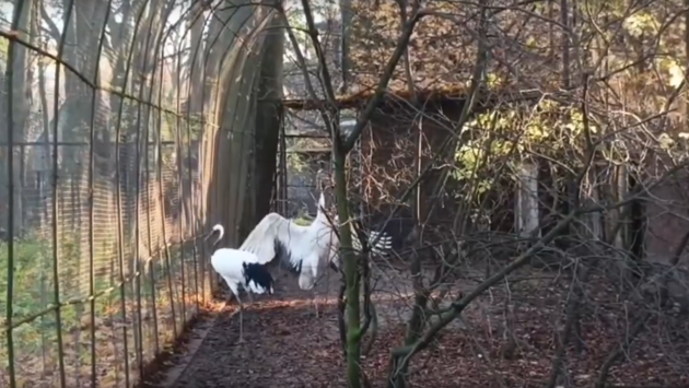 Самка краснокнижного журавля из зоопарка Ижевска встретилась с женихом в Калининграде