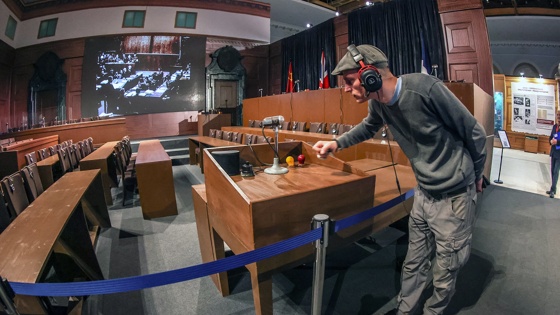 В Москве открылся форум "Без срока давности. Нюрнберг. 80 лет". Его участники в прямом смысле слова погружены в историю международного трибунала: в "Манеже", где проходит конференция, в деталях воссоздан знаменитый зал № 600 Дворца правосудия в Нюрнберге, где 20 ноября 1945 года начали судить главных нацистских преступников. Учтено не только то, кто, где и на чем сидел, в каком порядке были расположены флаги стран-победительниц, но и такие мелочи, как звонки и лампочки на трибунах.