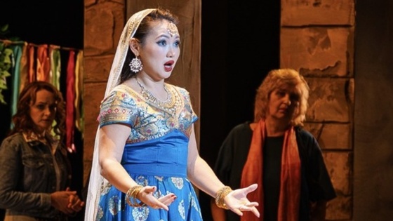На контрасте "Лакме" (постановка Сергея Новикова, дирижер - Михаил Леонтьев) - это совсем другая история. Действие оперы происходит на излете XIX века в британской Индии, когда многие индусы были вынуждены поклоняться своим богам тайно. Юная Лакме (очаровательная Александра Черпакова) становится символом красоты, любви и веры, а ее знаменитая роскошная Ария с колокольчиками - камертоном спектакля, где привычная формула оперного сюжета "любовь равняется смерть" обретает гораздо более глубокий посыл.