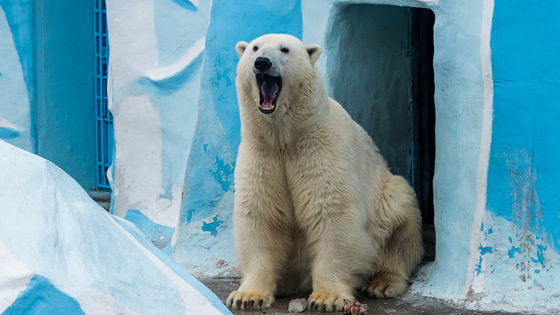 Несмотря на солидный статус, белый медведь не утратил артистизма и харизмы – он по-прежнему устраивает шоу для зрителей зоопарка.