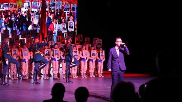 Вслед за ними на сцену поднялись юнармейцы. Они с гордостью несли фотографии ветеранов Великой Отечественной войны, отдавая дань памяти погибшим героям. Зал аплодировал стоя.