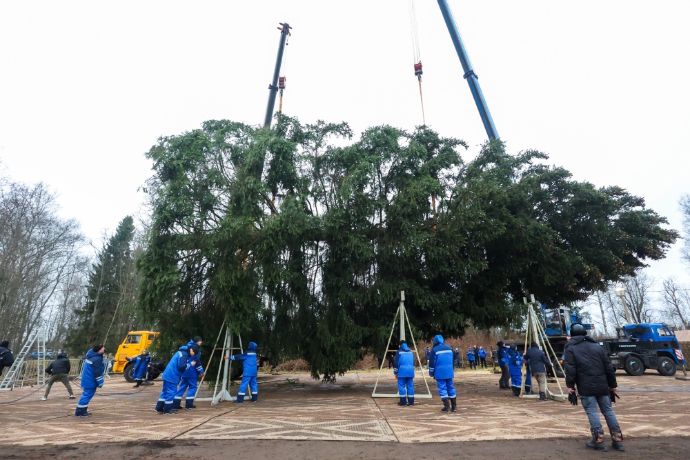 - Только его установка занимает два с половиной дня. Сначала монтируется главный ствол, затем на него набрасываются тросовые системы, после чего - 30 поясов, которые будут смонтированы на тросах. На установку лапок требуется еще два дня. На елке их в среднем до четырех тысяч в зависимости от пушистости и наполнения. Самое долгое - финальное оформление.