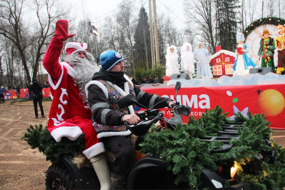 Солнце бликует в оптике объективов, аромат гречневой каши из полевой кухни смешивается с ароматом хвои. Ровно в одиннадцать утра Снегурочка с дровосеком приземлились на сцене, чтобы позвать Деда Мороза и объявить проводы красавицы ели.