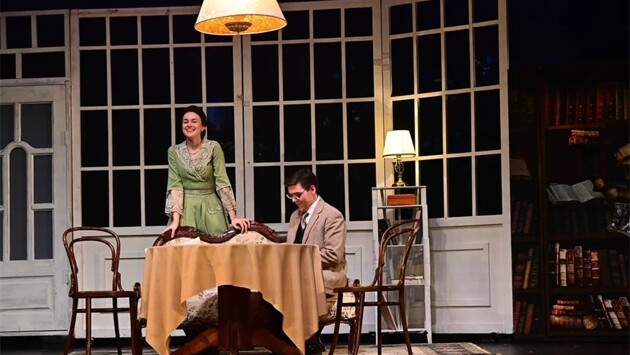 То есть в реальной жизни я бы на такой спектакль не пошел никогда. Однако сейчас понимаю, что для театрального училища он вполне уместен и даже необходим. Перед нами классический легкий английский детектив с изрядной долей иронии. Большинство персонажей подчеркнуто гротескные, никакого глубокого погружения в роль (как в "Аркадии" Мастерской Фоменко) нет и в помине. С другой стороны — это не плохо. Потому что существует и такой театр, и порой нужны именно такие герои и образы. Я уже знаком с курсом Марины Швыдкой благодаря неплохому спектаклю "Женщины Нискавуори" . Судя по срокам выхода, работа над обеими постановками велась одновременно, и у меня сложилось впечатление, что Павел Любимцев сознательно дал студентам роли полностью противоположные тем, что они играли в "Женщинах". Оно и разумно. Актер не должен замыкаться в одном амплуа. Максим Павлов в предыдущей постановке был миллионером, пожилым седым отцом семейства. Здесь наоборот: небогатый, неуверенный в себе молодой человек. Элина Вассернис, в "Женщинах" создавшая образ старой умирающей хозяйки дома, тут вполне молодая и активная садовница. Кстати, именно ее образ лучше всего вписывался в структуру чисто английского детектива. Изначально предполагалось, что это спектакль не для серьезных размышлений. Чисто развлекательная постановка, в которой можно и голову поломать, размышляя, кто же убийца (не скажу), и вдоволь посмеяться. Поскольку я был на прогоне "для своих", то отлично понимаю, что спектакль еще не совсем доработан, мелкие недостатки были. Например, начало немного вялое. Чувствуется, что изначально ребята пытались создать именно английскую атмосферу, и это у них не очень хорошо получалось. Главные герои сэр Роланд (Эдуард Гильмулин) и Кларисса (Вероника Устимова) немного переигрывали. Это отмечали даже зрители в зале. Однако уже к середине первого действия оба попали в свою струю, оба поняли, что в гротескных типажах нет решительно ничего плохого, и образы сложились. Сэр Роланд превратился в комичного старикашку, чуть ли не над каждым действием которого зал откровенно и по-доброму смеялся. Кларисса тоже перестала быть "англичанкой" и превратилась в такую же комичную, хитровато-туповатую женщину, которой мы начали даже немного сочувствовать. И чем лучше складывались два основных образа — тем лучше складывался и спектакль. Режиссер грамотно выбрал произведение. Ведь зрителя сразу же цепляет загадка — хочется непременно узнать, кто же этот преступник, поэтому даже если бы спектакль был откровенно плохим, все равно большая часть зрителей досидела бы до конца. Хотя бы ради разгадки. Но спектакль был хорошим (вялое начало списываю исключительно на прогон), под конец полностью сложилось впечатление, что мы смотрим английский детектив. Однозначно рекомендую постановку для любителей загадок и иронии. Вы просто хорошо проведете время. Уверен, что и Эдуард, и Вероника совместно с режиссером доработают свои образы — и действие начнет цеплять с самой первой мизансцены. Также хотелось бы отметить, что курс у Марины Александровны очень сильный. Кроме уже упомянутых студентов, хотелось бы сказать про Александра Серебренникова. Он был лучшим и в "Женщинах", и здесь тоже создал очень интересный образ. Немного даже обидно становится за парня, потенциал у него очень высокий, а в обоих 