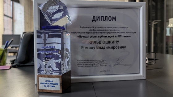 19 декабря 2025 года в Москве прошла церемония награждения победителей Всероссийского конкурса для журналистов СМИ, которые освещают сферу информационных технологий «Цифровая журналистика – 2025».