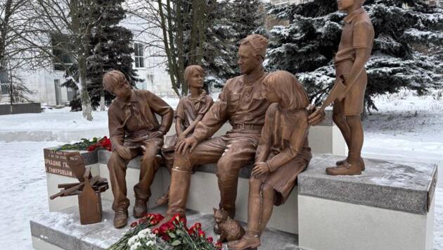 В Курске открыли памятник Аркадию Гайдару, тимуровцам и котику